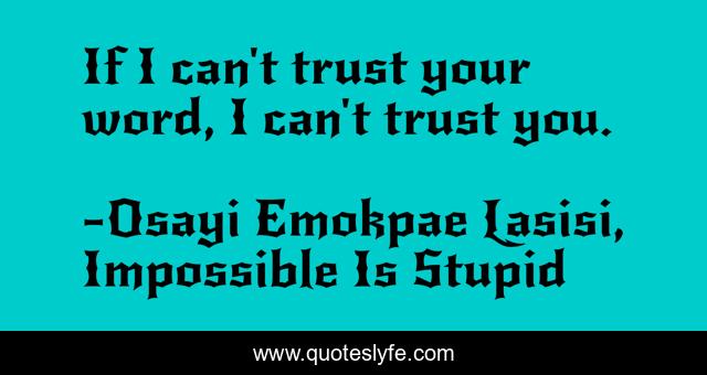 "Osayi Emokpae Lasisi, Impossible Is Stupid Quotes." Quoteslyfe.com, 2025. Fri. 05 Dec. 2025. <https://www.quoteslyfe.com/quote/If-I-can-t-trust-your-word-120070>.