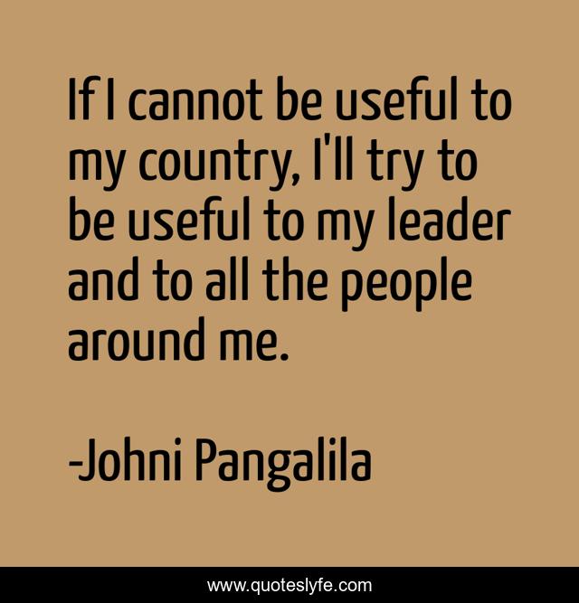 This page presents the quote "If I cannot be useful to my country, I'll try to be useful to my leader and to all the people around me.". Author of this quote is Johni Pangalila. .