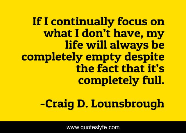 This page presents the quote "If I continually focus on what I don’t have, my life will always be completely empty despite the fact that it’s completely full.". Author of this quote is Craig D. Lounsbrough. This quote is about poor, owed, full, perspectives, orientation, entitlement, appreciation, optimist, appreciate,.