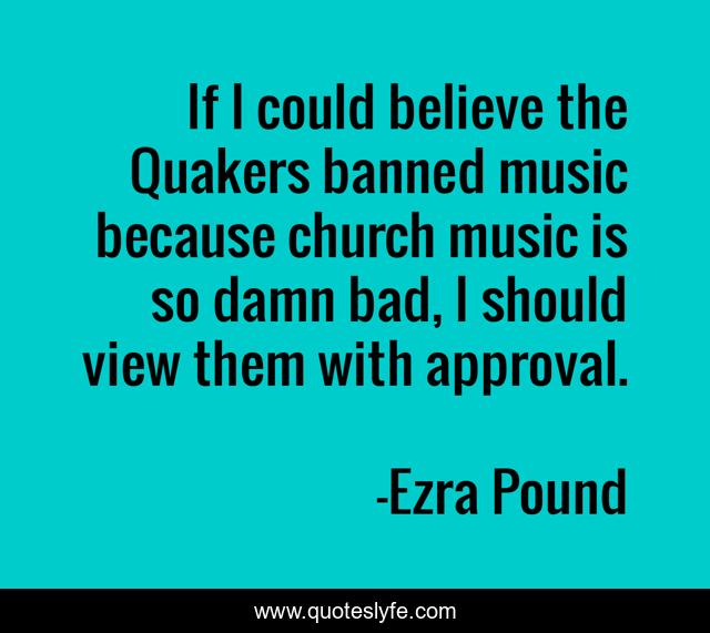 This page presents the quote "If I could believe the Quakers banned music because church music is so damn bad, I should view them with approval.". Author of this quote is Ezra Pound. This quote is about believe, view, church,.
