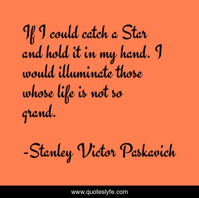 This page presents the quote "If I could catch a Star and hold it in my hand. I would illuminate those whose life is not so grand.". Author of this quote is Stanley Victor Paskavich. .