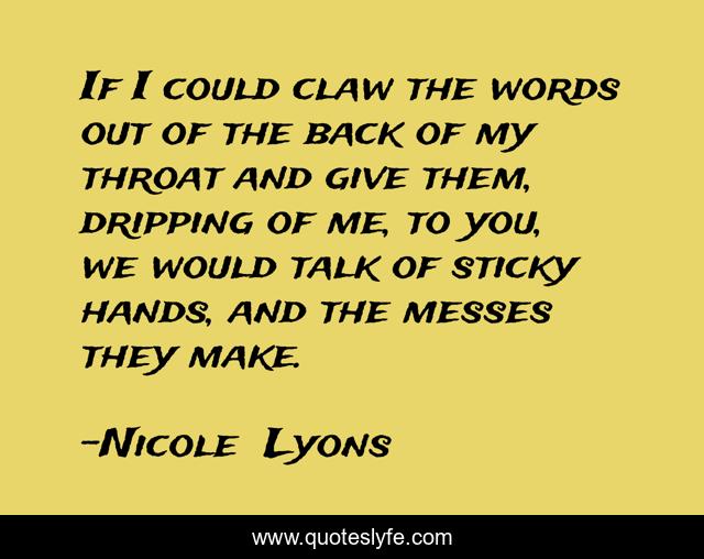 "Nicole Lyons Quotes." Quoteslyfe.com, 2025. Sat. 06 Dec. 2025. <https://www.quoteslyfe.com/quote/If-I-could-claw-the-words-out-182100>.