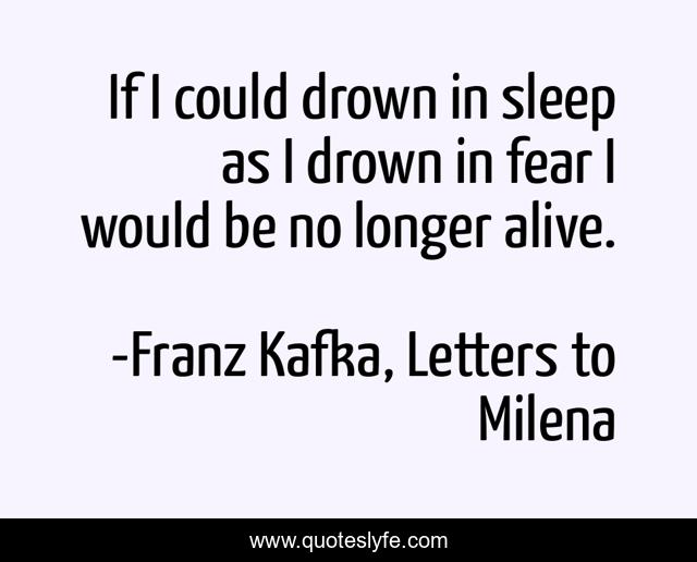 This page presents the quote "If I could drown in sleep as I drown in fear I would be no longer alive.". Author of this quote is Franz Kafka, Letters to Milena. .