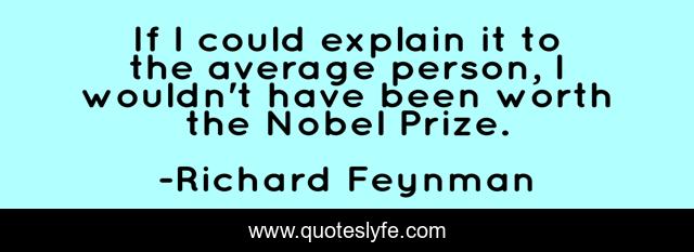 This page presents the quote "If I could explain it to the average person, I wouldn't have been worth the Nobel Prize.". Author of this quote is Richard Feynman. This quote is about genius, nobel-prize, bongo-player, physicist,.