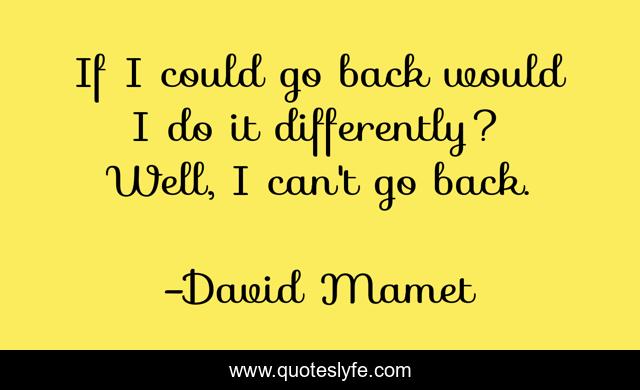 This page presents the quote "If I could go back would I do it differently? Well, I can't go back.". Author of this quote is David Mamet. This quote is about regret, reminiscence,.