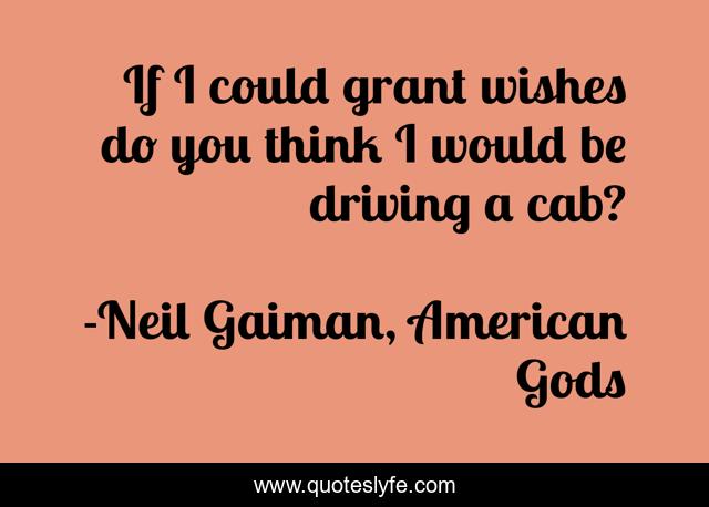 This page presents the quote "If I could grant wishes do you think I would be driving a cab?". Author of this quote is Neil Gaiman, American Gods. This quote is about newyork, taxi, wishes, gaiman, djinn,.