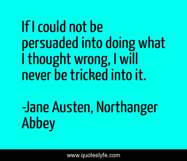 This page presents the quote "If I could not be persuaded into doing what I thought wrong, I will never be tricked into it.". Author of this quote is Jane Austen, Northanger Abbey. .