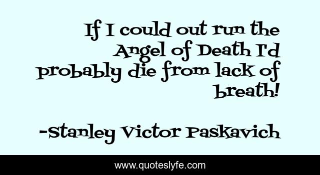 This page presents the quote "If I could out run the Angel of Death I'd probably die from lack of breath!". Author of this quote is Stanley Victor Paskavich. .