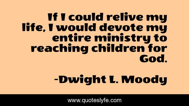 This page presents the quote "If I could relive my life, I would devote my entire ministry to reaching children for God.". Author of this quote is Dwight L. Moody. This quote is about god, life, ministry, children, quotes,.