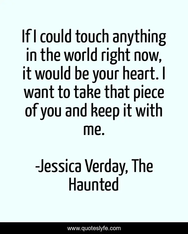 This page presents the quote "If I could touch anything in the world right now, it would be your heart. I want to take that piece of you and keep it with me.". Author of this quote is Jessica Verday, The Haunted. This quote is about touch, heart, love, affection,.