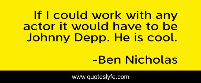 This page presents the quote "If I could work with any actor it would have to be Johnny Depp. He is cool.". Author of this quote is Ben Nicholas. This quote is about if i could, work, actor,.