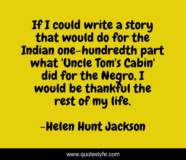 This page presents the quote "If I could write a story that would do for the Indian one-hundredth part what 'Uncle Tom's Cabin' did for the Negro, I would be thankful the rest of my life.". Author of this quote is Helen Hunt Jackson. This quote is about life, be thankful, my life,.