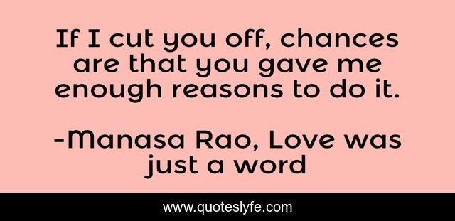 This page presents the quote "If I cut you off, chances are that you gave me enough reasons to do it.". Author of this quote is Manasa Rao, Love was just a word. This quote is about break-up, life, love, relationship, affection,.