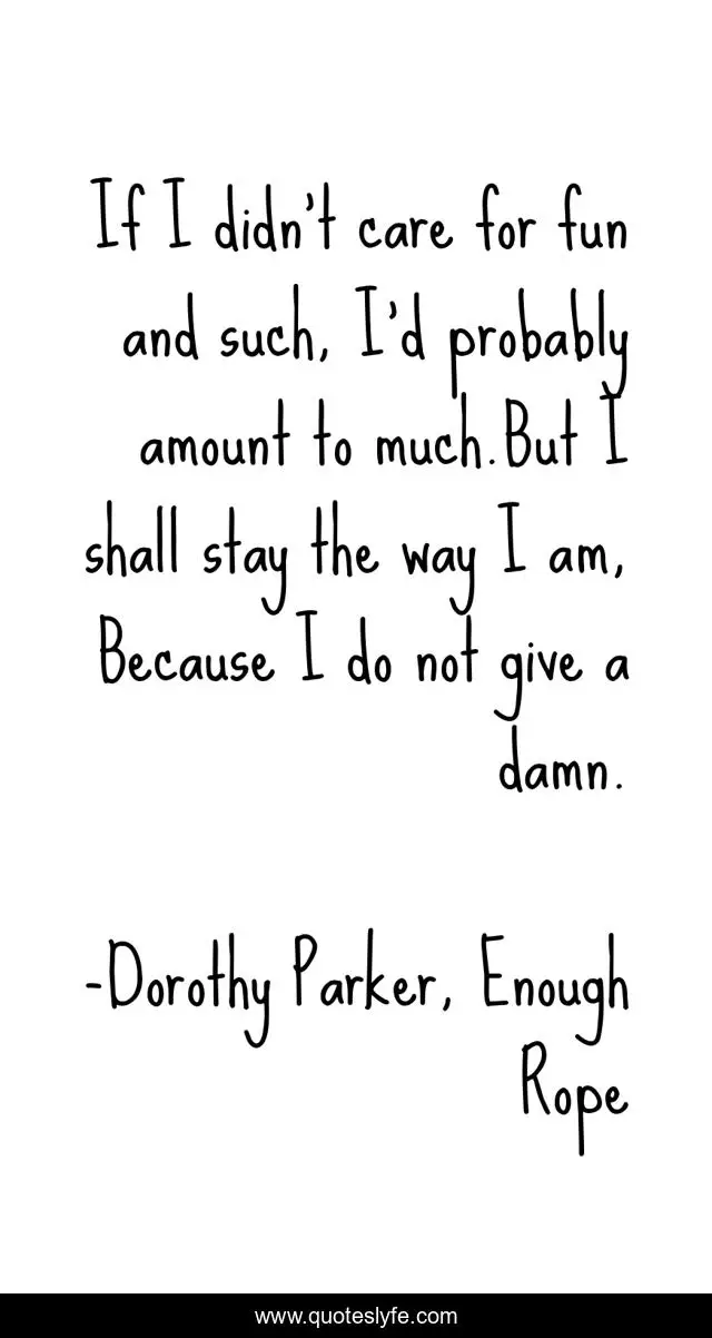 "Dorothy Parker, Enough Rope Quotes." Quoteslyfe.com, 2025. Sat. 06 Dec. 2025. <https://www.quoteslyfe.com/quote/If-I-didn-t-care-for-fun-227117>.