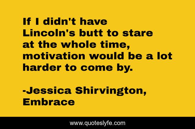 This page presents the quote "If I didn't have Lincoln's butt to stare at the whole time, motivation would be a lot harder to come by.". Author of this quote is Jessica Shirvington, Embrace. This quote is about motivation, violet-eden-chapters, jessica-shirvington, violet-eden, lincoln-wood, embrace-series,.