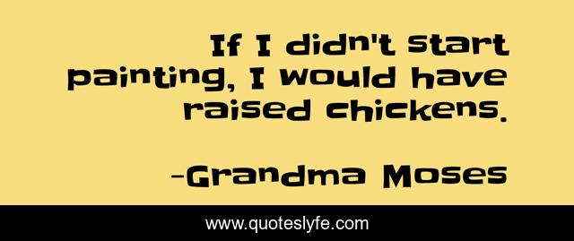 This page presents the quote "If I didn't start painting, I would have raised chickens.". Author of this quote is Grandma Moses. This quote is about art, chickens, painting,.