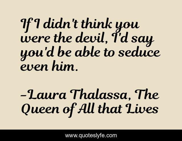 This page presents the quote "If I didn't think you were the devil, I'd say you'd be able to seduce even him.". Author of this quote is Laura Thalassa, The Queen of All that Lives. This quote is about devil, seduce,.