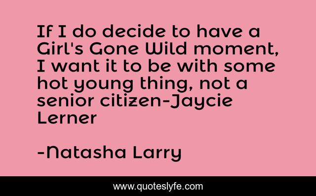 This page presents the quote "If I do decide to have a Girl's Gone Wild moment, I want it to be with some hot young thing, not a senior citizen-Jaycie Lerner". Author of this quote is Natasha Larry. This quote is about darwin-s-children-series, book,.
