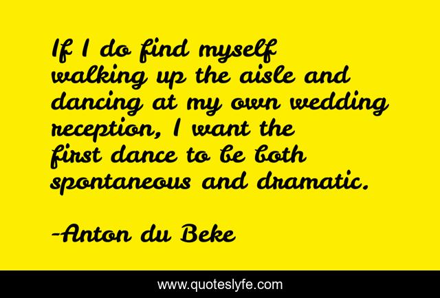 This page presents the quote "If I do find myself walking up the aisle and dancing at my own wedding reception, I want the first dance to be both spontaneous and dramatic.". Author of this quote is Anton du Beke. This quote is about dance, myself, walking,.