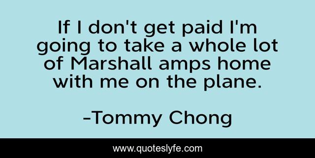 This page presents the quote "If I don't get paid I'm going to take a whole lot of Marshall amps home with me on the plane.". Author of this quote is Tommy Chong. This quote is about me, going, whole,.