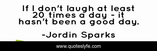 This page presents the quote "If I don't laugh at least 20 times a day - it hasn't been a good day.". Author of this quote is Jordin Sparks. This quote is about good day, day, laugh,.