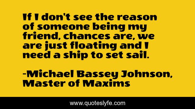 "Michael Bassey Johnson, Master of Maxims Quotes." Quoteslyfe.com, 2025. Fri. 05 Dec. 2025. <https://www.quoteslyfe.com/quote/If-I-don-t-see-the-reason-126618>.