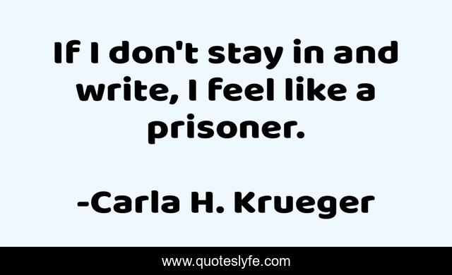 This page presents the quote "If I don't stay in and write, I feel like a prisoner.". Author of this quote is Carla H. Krueger. This quote is about for-writers, being-a-writer, passion, writing-life, writing-tips,.