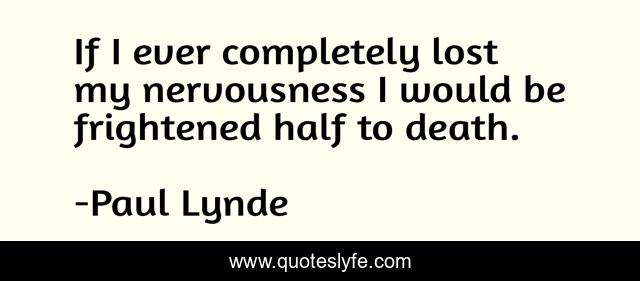 This page presents the quote "If I ever completely lost my nervousness I would be frightened half to death.". Author of this quote is Paul Lynde. This quote is about lost, half,.