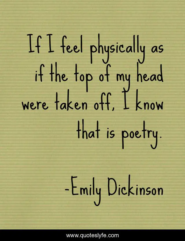 This page presents the quote "If I feel physically as if the top of my head were taken off, I know that is poetry.". Author of this quote is Emily Dickinson. .