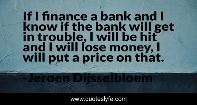 This page presents the quote "If I finance a bank and I know if the bank will get in trouble, I will be hit and I will lose money, I will put a price on that.". Author of this quote is Jeroen Dijsselbloem. This quote is about money, bank,.
