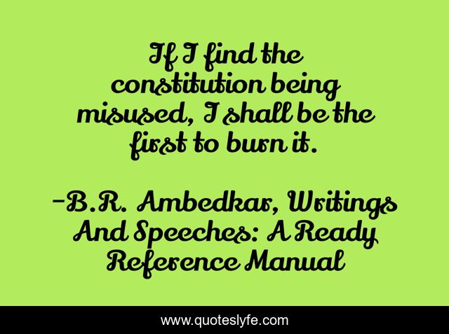 "B.R. Ambedkar, Writings And Speeches: A Ready Reference Manual Quotes." Quoteslyfe.com, 2025. Sat. 06 Dec. 2025. <https://www.quoteslyfe.com/quote/If-I-find-the-constitution-being-misused-249135>.