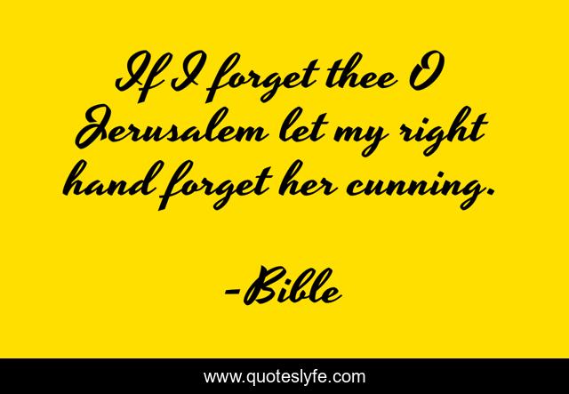 This page presents the quote "If I forget thee O Jerusalem let my right hand forget her cunning.". Author of this quote is Bible. .