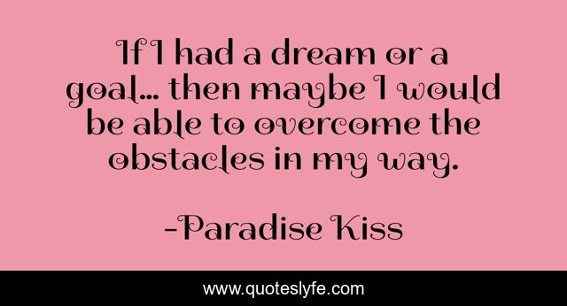 This page presents the quote "If I had a dream or a goal… then maybe I would be able to overcome the obstacles in my way.". Author of this quote is Paradise Kiss. This quote is about yuriko, life, paradise-kiss, anime, manga, dreams, goals,.