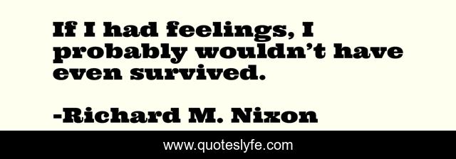 This page presents the quote "If I had feelings, I probably wouldn’t have even survived.". Author of this quote is Richard M. Nixon. This quote is about failure, survival, feelings, president,.