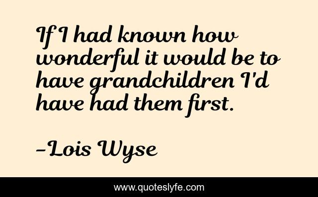 This page presents the quote "If I had known how wonderful it would be to have grandchildren I'd have had them first.". Author of this quote is Lois Wyse. .