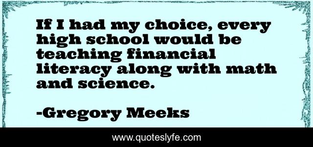 This page presents the quote "If I had my choice, every high school would be teaching financial literacy along with math and science.". Author of this quote is Gregory Meeks. This quote is about school, financial, choice,.
