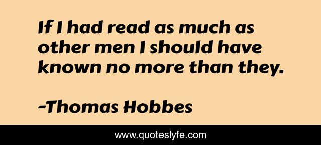 This page presents the quote "If I had read as much as other men I should have known no more than they.". Author of this quote is Thomas Hobbes. This quote is about scholars, scholarship,.