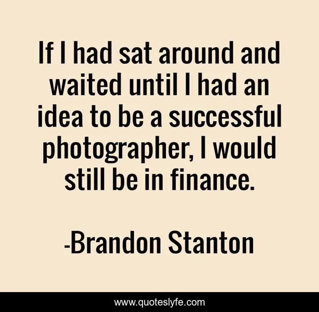 This page presents the quote "If I had sat around and waited until I had an idea to be a successful photographer, I would still be in finance.". Author of this quote is Brandon Stanton. This quote is about successful, idea,.