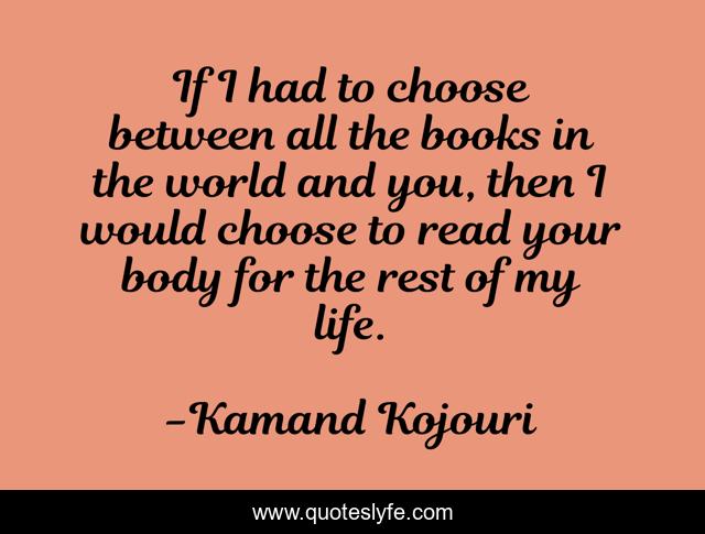 "Kamand Kojouri Quotes." Quoteslyfe.com, 2025. Fri. 05 Dec. 2025. <https://www.quoteslyfe.com/quote/If-I-had-to-choose-between-all-43873>.