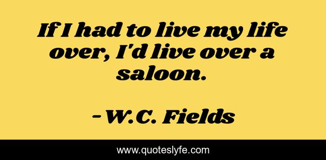 This page presents the quote "If I had to live my life over, I'd live over a saloon.". Author of this quote is W.C. Fields. This quote is about drinking, philosophy, non-sequitur,.