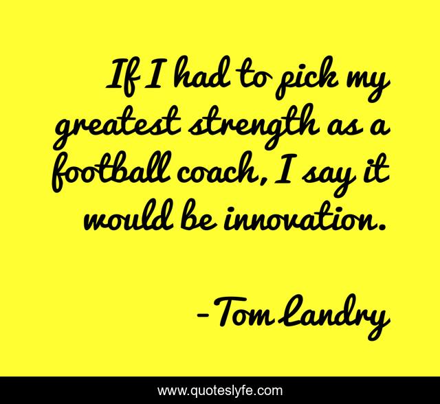This page presents the quote "If I had to pick my greatest strength as a football coach, I say it would be innovation.". Author of this quote is Tom Landry. This quote is about football, innovation,.