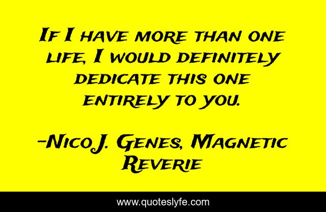 This page presents the quote "If I have more than one life, I would definitely dedicate this one entirely to you.". Author of this quote is Nico J. Genes, Magnetic Reverie. This quote is about life, love, love-and-sayings, decision-making, choice, life-and-living, affection, multiple-realities,.