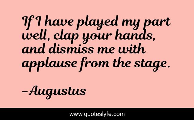 This page presents the quote "If I have played my part well, clap your hands, and dismiss me with applause from the stage.". Author of this quote is Augustus. This quote is about roman, history,.