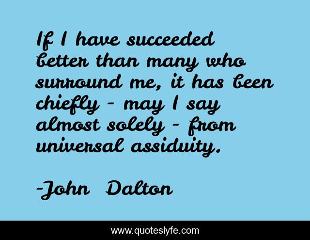 This page presents the quote "If I have succeeded better than many who surround me, it has been chiefly - may I say almost solely - from universal assiduity.". Author of this quote is John Dalton. .