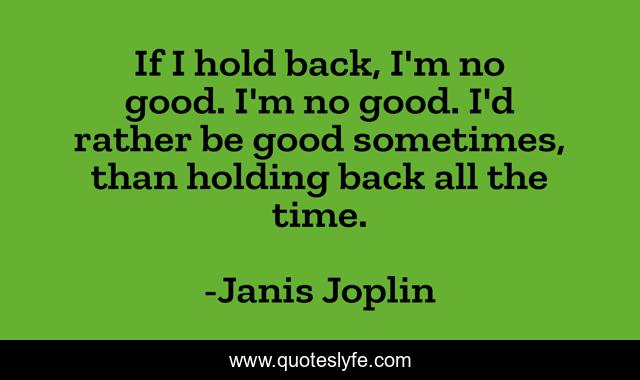 This page presents the quote "If I hold back, I'm no good. I'm no good. I'd rather be good sometimes, than holding back all the time.". Author of this quote is Janis Joplin. This quote is about good, back, sometimes,.
