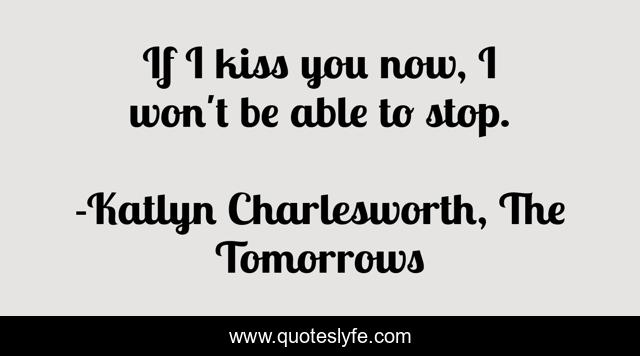 This page presents the quote "If I kiss you now, I won't be able to stop.". Author of this quote is Katlyn Charlesworth, The Tomorrows. This quote is about love, historical, fiction, romance, kiss, affection,.