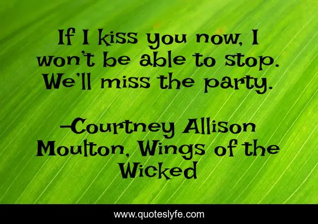 This page presents the quote "If I kiss you now, I won’t be able to stop. We’ll miss the party.". Author of this quote is Courtney Allison Moulton, Wings of the Wicked. .
