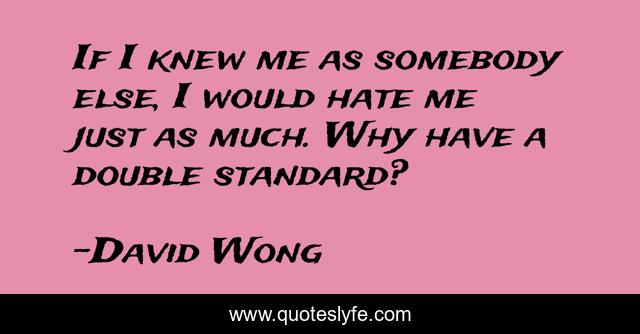 This page presents the quote "If I knew me as somebody else, I would hate me just as much. Why have a double standard?". Author of this quote is David Wong. This quote is about hate, humor,.