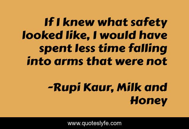 This page presents the quote "If I knew what safety looked like, I would have spent less time falling into arms that were not". Author of this quote is Rupi Kaur, Milk and Honey. .