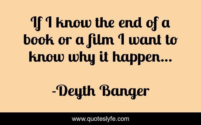 This page presents the quote "If I know the end of a book or a film I want to know why it happen...". Author of this quote is Deyth Banger. This quote is about end, vtf, wow, book, wtf, happen, why, film, suprising,.